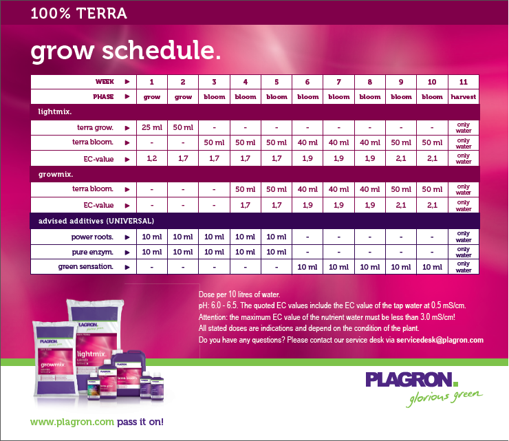 Plagron Terra Bloom – уникальное био-минеральное удобрение, обеспечивающее повышенную потребность растения в микро и макро элементах в момент цветения и плодоношения. Подходит для всех типов почвосмесей и может быть использовано с любыми стимуляторами.